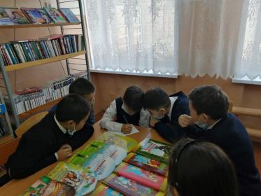 "Оқуға құштар мектеп" жобасының аясында 6-сынып оқушыларымен "Ертегілер әлеміне саяхат" атты кітапханалық сабақ өтк...